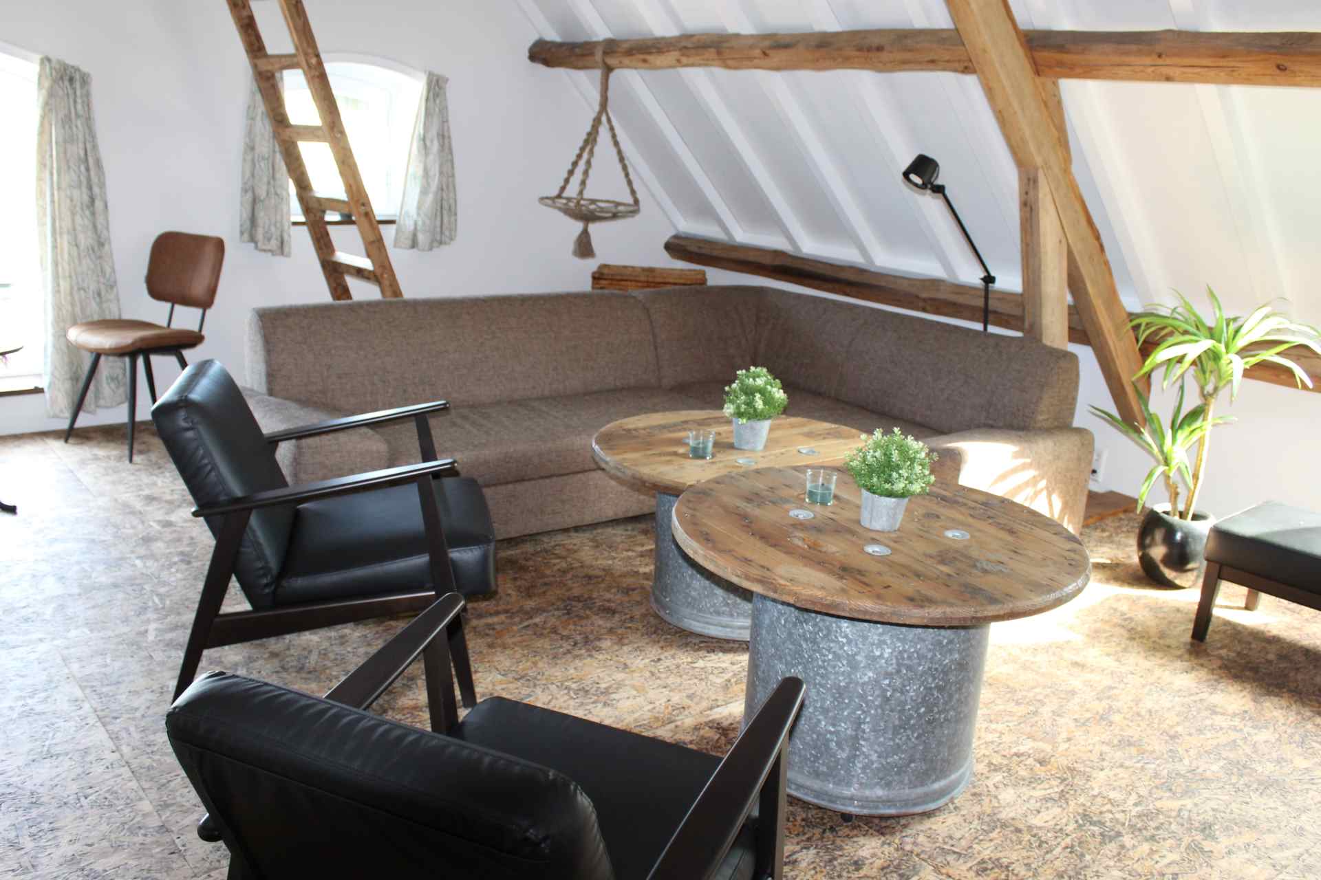 In our old hayloft we have made accommodation for people. We have done this in the most sustainable way possible, with thick insulation, reused old materials and installed a heat pump with air conditioning and solar boiler so that the sun has already warmed your shower water when you arrive.